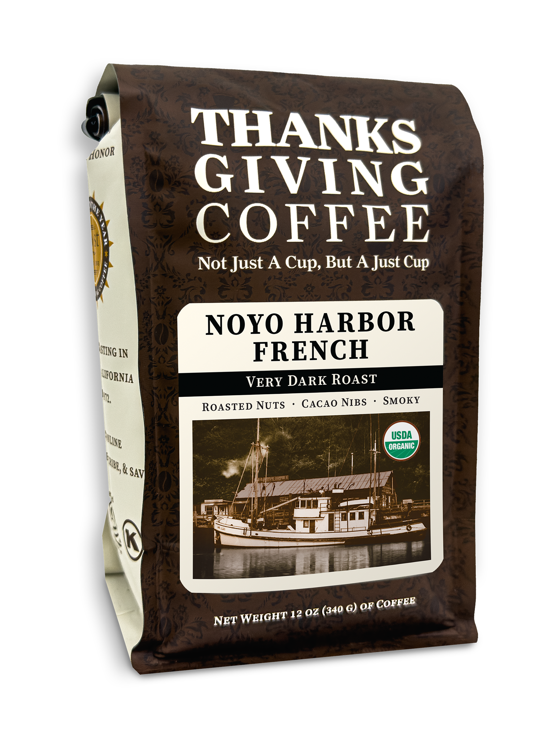 Distinctively smoky flavor with hints of jammy fruit, roasted nuts and baker's chocolate. This is our signature Organic French Roast blend, featuring coffees from Central America, South America and Indonesia.